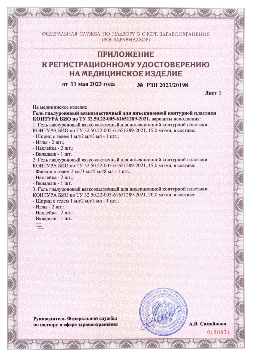 Гель гиалуроновый вязкоэластичный для инъекционной контурной пластики КОНТУРА БИО 20мг/мл, 2мл