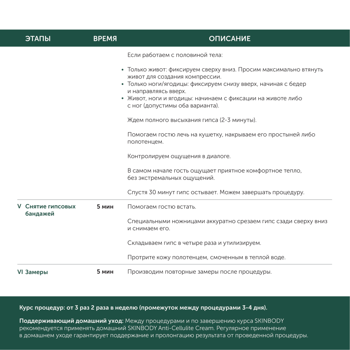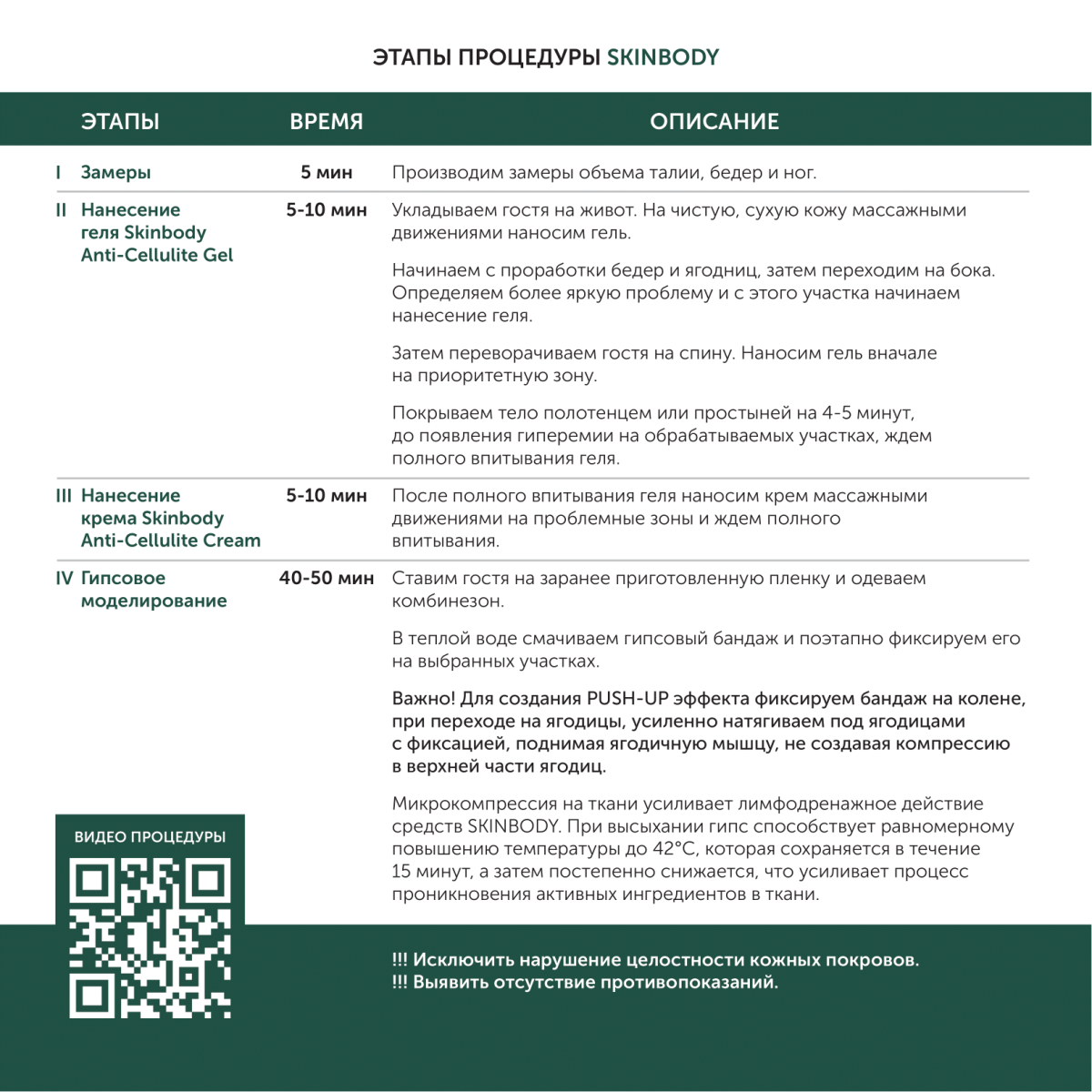Антицеллюлитный крем SKINBODY усиливает и завершает процесс липолиза, обладает сосудосуживающим действием, предотвращая возвращение триглицеридов обратно в жировую клетку и способствует их выведению из организма, оказывает видимый лифтинг эффект, увлажняет, смягчает и питает кожу, выравнивает рельеф и улучшает тургор и тон кожи.