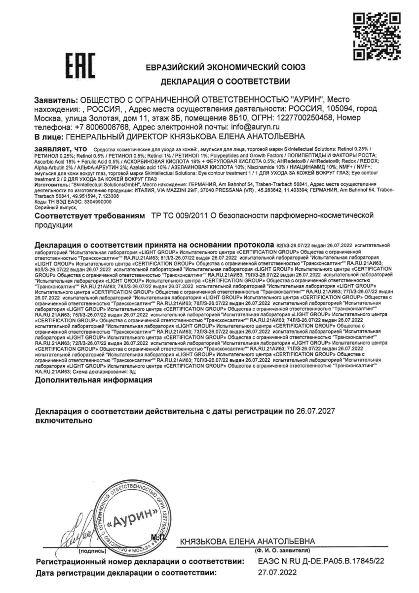 Микроэмульсия Redox System Skintellectual Solutions